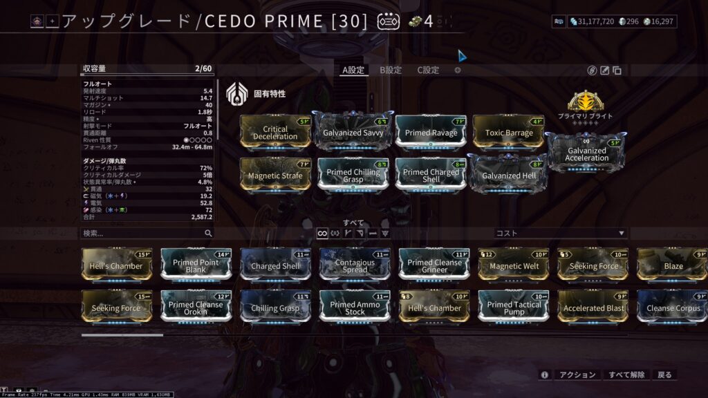 主力になるMODです、主にGyreで使われるのは1番、3番、4番の増強MODと、範囲>威力MODになります