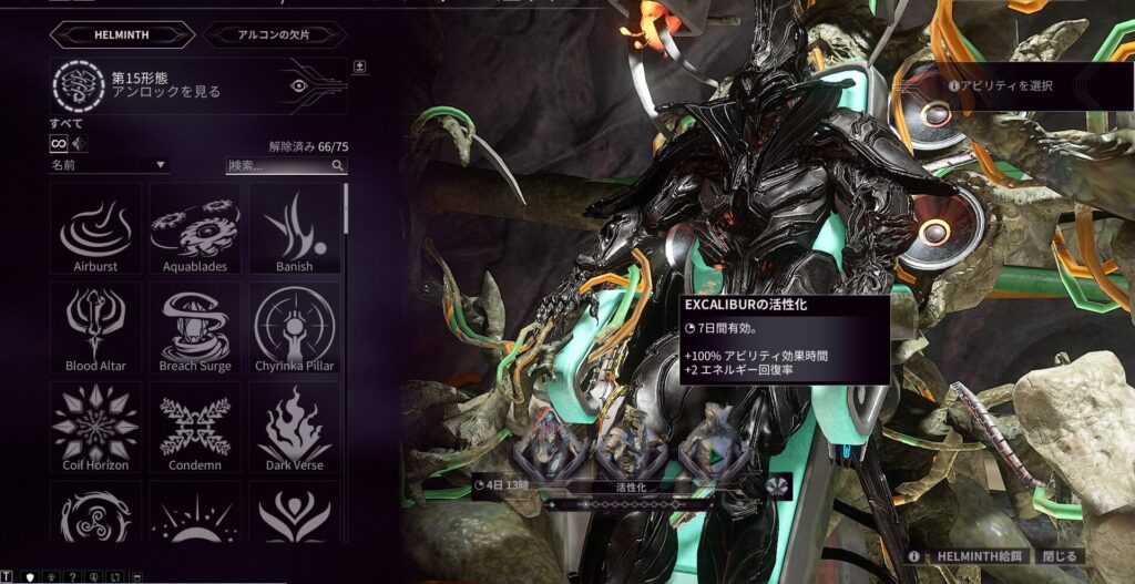 Helminth活性バフ、オーグメント、Madurai等アビリティ威力を高めています。